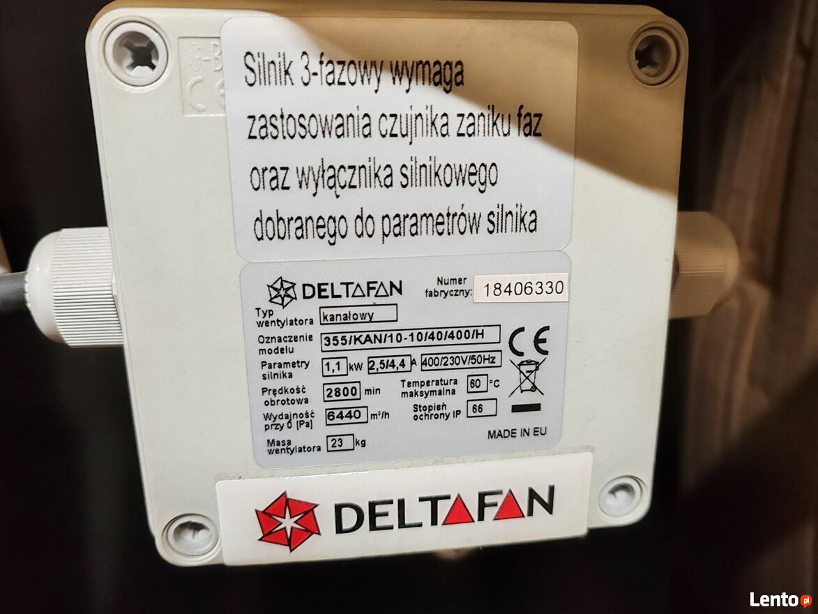 WENTYLATOR KANAŁOWY 355/KAN/10-10/40/400/H Deltafan