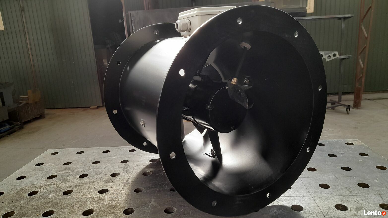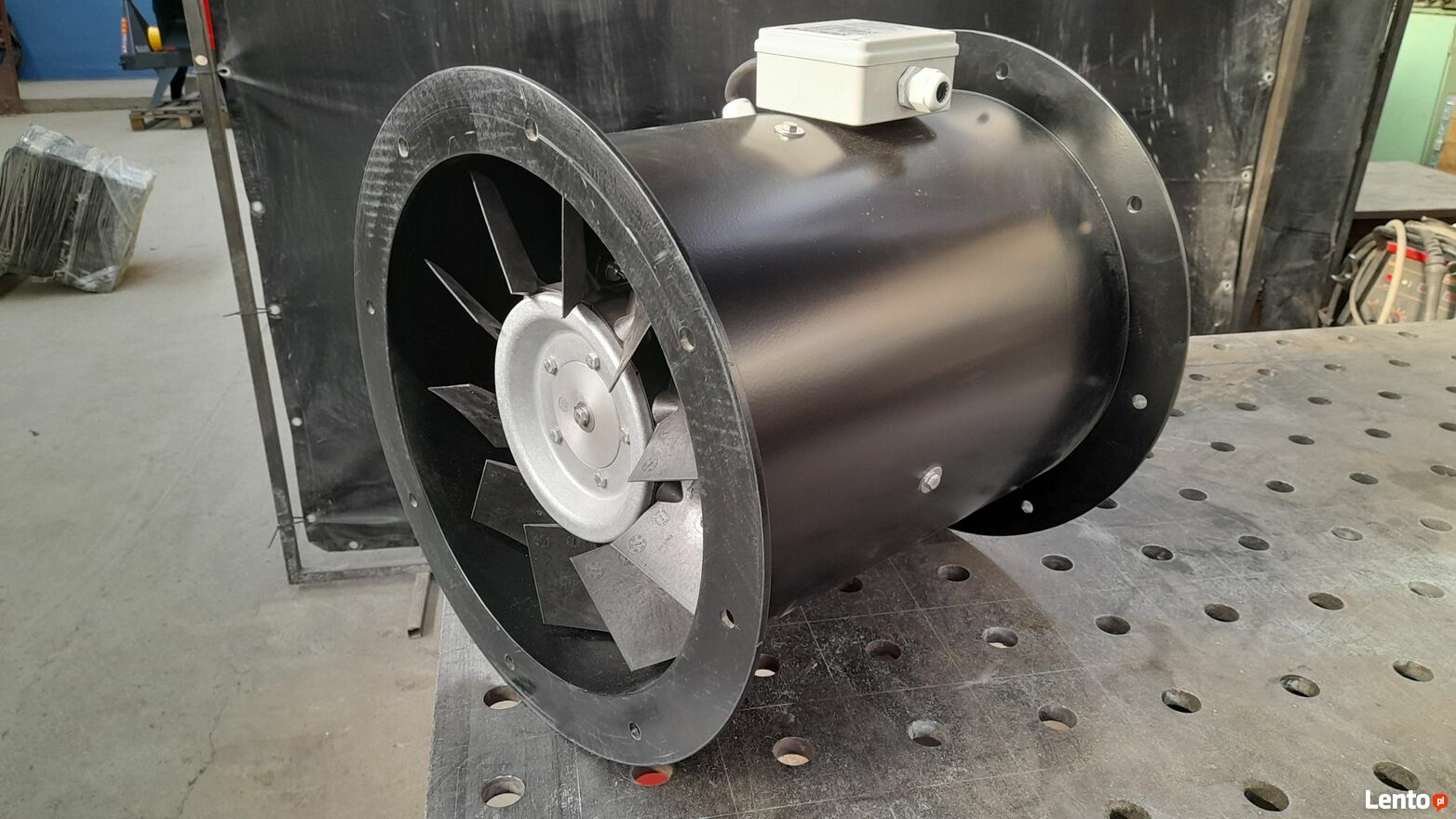 Wentylator przemysłowy służy do montażu w instalacjach dystrybucji gorącego powietrza na halach produkcyjnych, magazynach, warsztatach, tunelach foliowych bądź szklarni, oraz w innych obiektach. Wysoka wydajność, bezawaryjność, niski poziom hałasu oraz energooszczędność są jego atutami. Wentylator przystosowany do pracy ze sterownikiem płynnej regulacji prędkości obrotowej do dużej mocy. Montaż przy piecu nadmuchowym. Wentylator tłoczący.DANE TECHNICZNE: